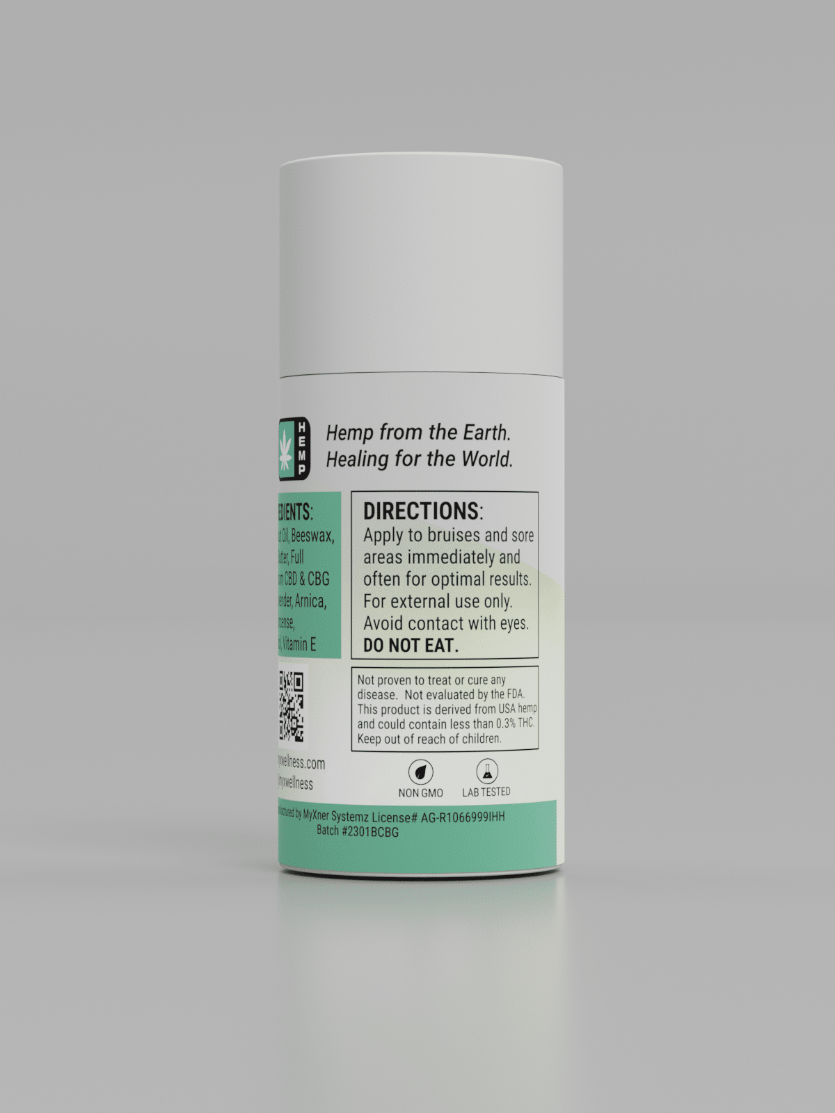 When you just want your beautiful skin back, Bruise Balm targets those ugly bruises. Take self-care to a new level with this unique blend of botanicals featuring arnica, frankincense, CBG, and CBD oils. Bruise Balm is formulated to immediately go to work on those unsightly bruises and skin blemishes such as wrinkles and stretch marks. Arnica, known for having pain relieving qualities, helps by taking aim at the pain that is often associated with bruising.
