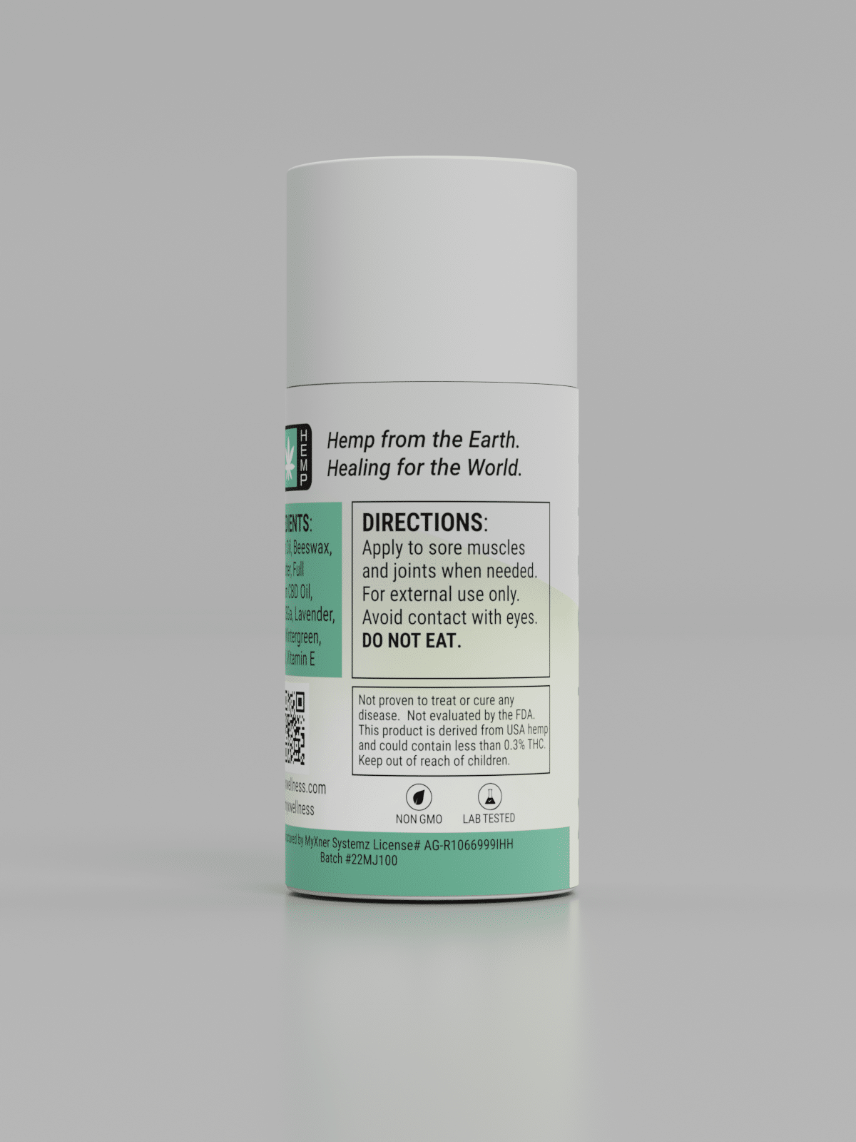 Ingredients: Organic coconut oil, beeswax, shea butter, CBD distillate, lavender, arnica, wintergreen, menthol crystals, Vitamin E oil, CBDA Isolate, and CBGA Isolate.